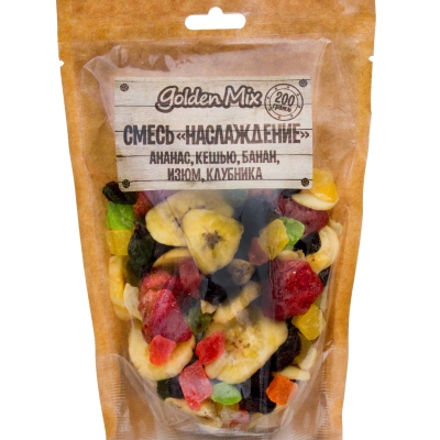 Ананас, изюм, банан, кешью, клубника, сахар, Е110, Е124, Е102, Е133, растит. масло, кокос. масло, мед.